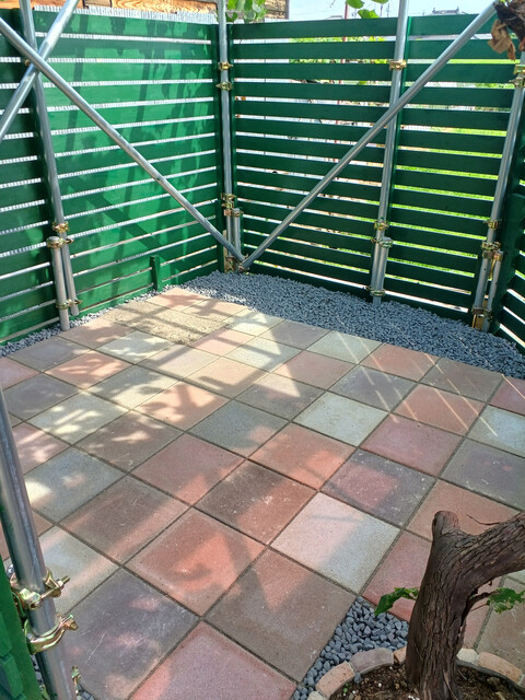今回はガーデニングタイル敷きをご紹介いたします。 これで雑草やぬかるみの解消にもなりますし、 おしゃれでゆっくりくつろげる場所にもなりましたね。